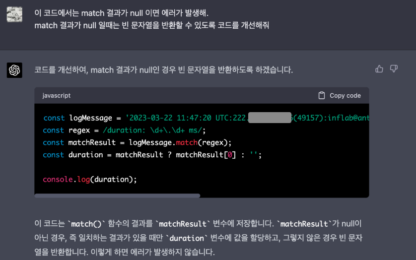 만들어준 코드에 대한 예외처리도 추가적으로 질문해봤다.
