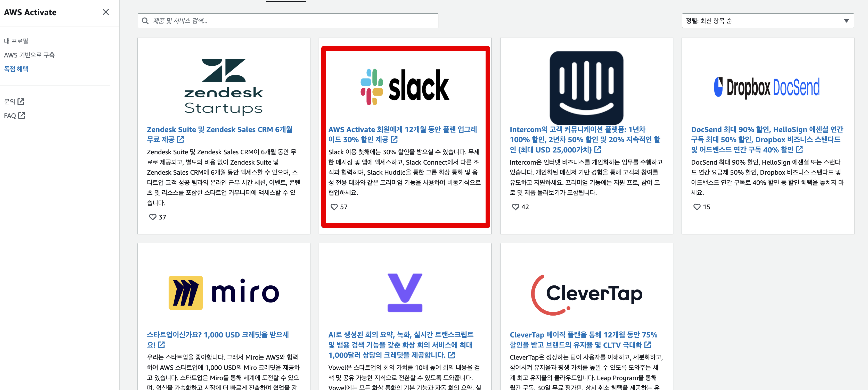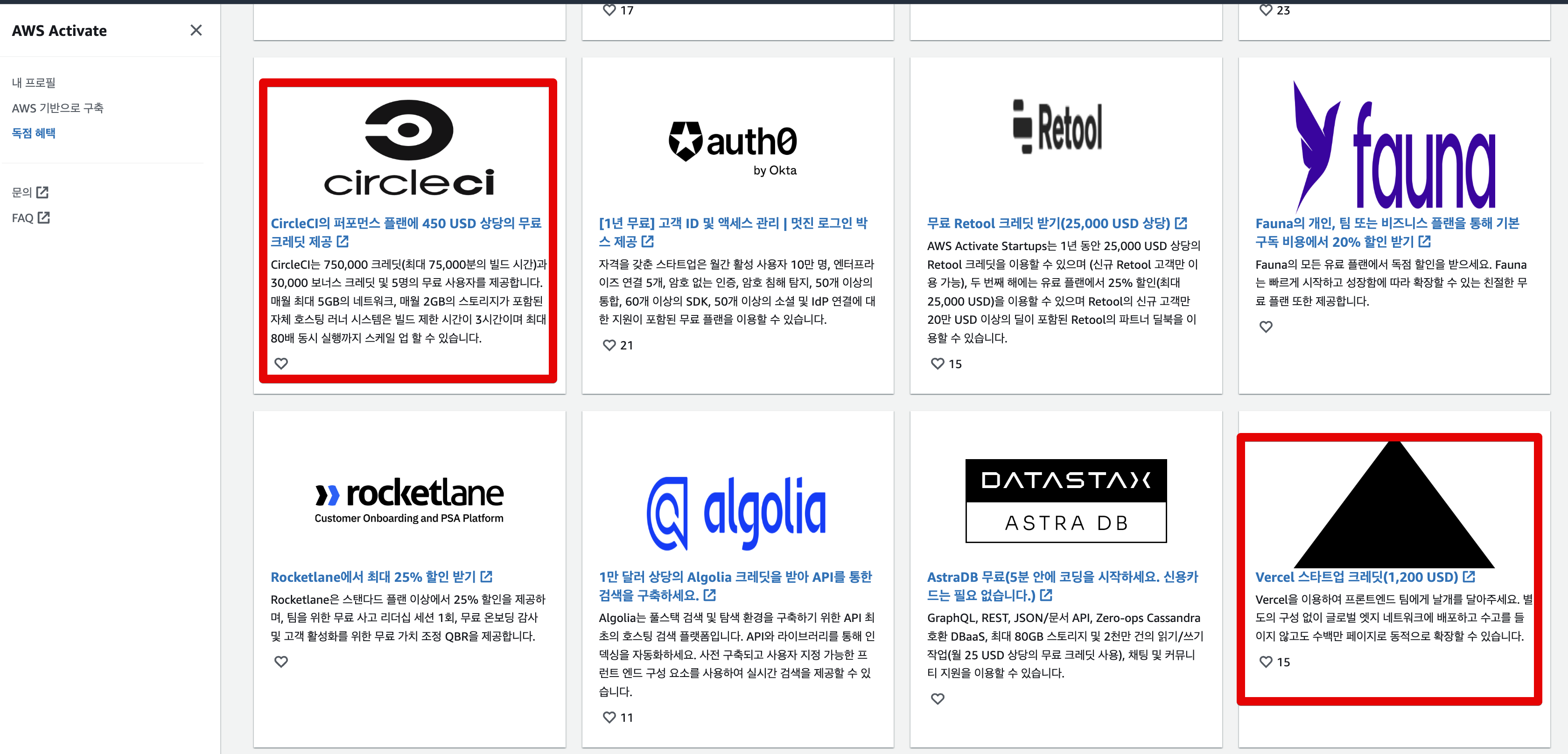 물론 아래 다른 SaaS 들의 혜택 소개는 AWS Activate 가 아니더라도 받을 수 있는 혜택들로 추렸기 때문에 Azure, GCP, Vercel 등으로 서비스를 구축했더라도 아래 다른 SaaS들의 혜택은 받을 수 있다.