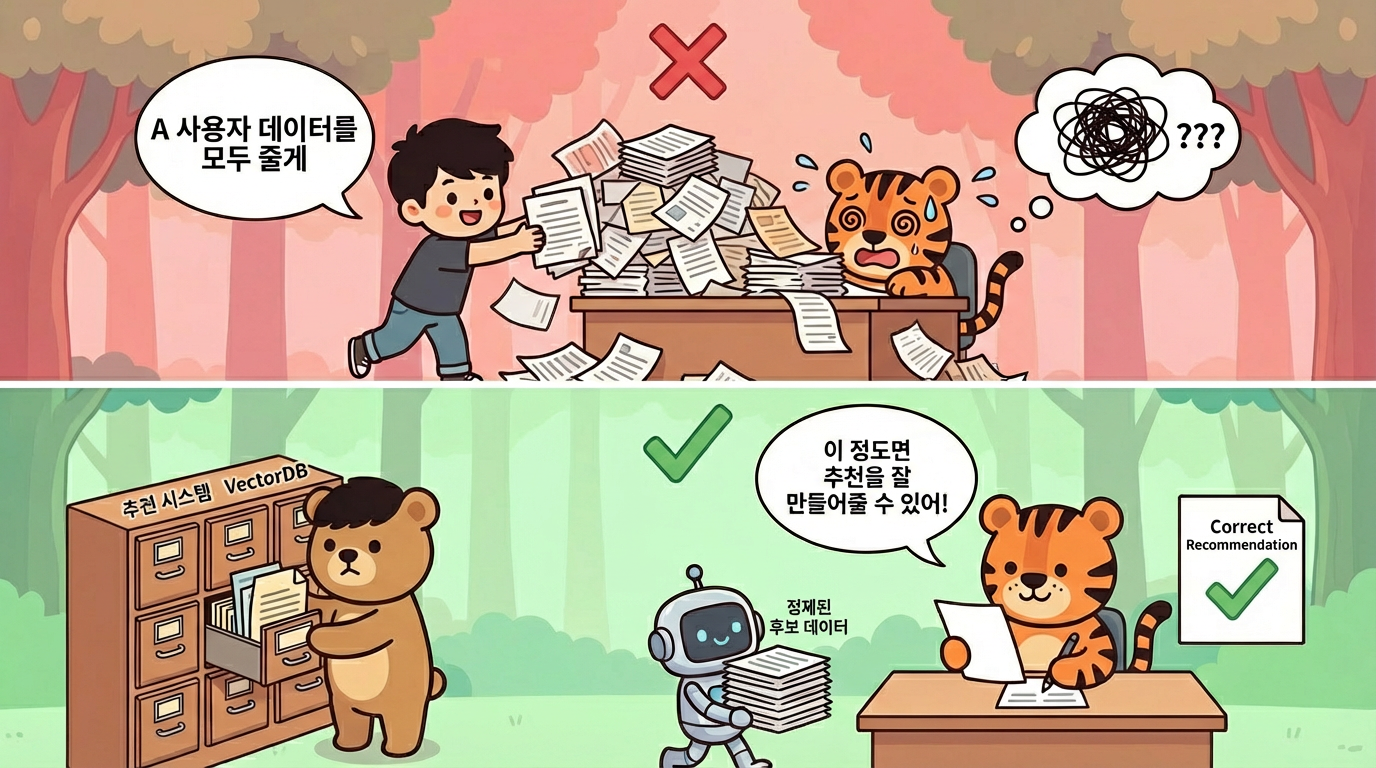 결국 LLM을 활용한 추천의 품질은 LLM의 성능이 아니라, 우리가 넘겨주는 데이터의 품질에 달려있다.