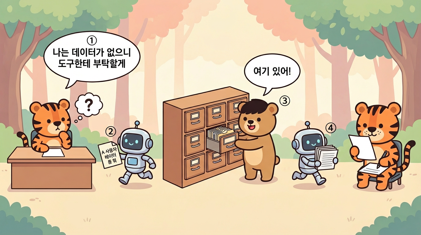 LLM이 도구를 호출하면 -> 그 도구가 데이터베이스에서 데이터를 가져와서 -> LLM에게 넘겨주는 것이다.