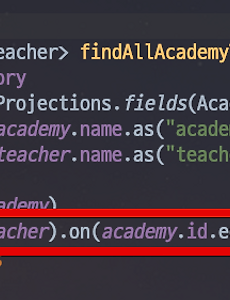Spring Data29 더티 체킹 (Dirty Checking)이란? Spring Data Jpa와 같은 ORM 구현체를 사용하다보면 더티 체킹이란 단어를 종종 듣게 됩니다. 더티 체킹이란 단어를 처음 듣는분들을 몇번 만나게 되어 이번 시간엔 더티 체킹이 무엇인지 알아보겠습니다. 모든 코드는 Github에 있습니다. 예를 들어 다음과 같은 코드가 있습니다. (Spring Data Jpa가 익숙하시겠지만, 네이티브한 코드 먼저 보고 가겠습니다.) @Slf4j @RequiredArgsConstructor @Service public class PayService { public void updateNative(Long id, String tradeNo) { EntityManager em = entityManagerFactory.createEntityManager(); Enti.. 2019. 4. 29. [Querydsl] Case When 사용하기 안녕하세요? 이번 시간엔 spring-boot-querydsl 예제를 진행해보려고 합니다. 모든 코드는 Github에 있기 때문에 함께 보시면 더 이해하기 쉬우실 것 같습니다. (공부한 내용을 정리하는 Github와 세미나+책 후기를 정리하는 Github, 이 모든 내용을 담고 있는 블로그가 있습니다. ) 본문 MyBatis로 사용하던 쿼리를 Querydsl로 전환하는 과정에서 만나는 여러 문제중 Case When도 있습니다. 물론 Case When은 안티 패턴이라 생각합니다. 좋은 구조라면 어플리케이션에서 비지니스 로직을 처리해야하기 때문에 이왕 마이그레이션 한다면 이런 로직 역시 어플리케이션으로 옮기시는걸 추천합니다. 하지만, 그 방법이 어렵다면 Querydsl에서 Case When을 쓰셔야겠죠? Q.. 2019. 2. 7. [Querydsl] 연관관계 없이 Join 조회하기 안녕하세요? 이번 시간엔 Querydsl에서 연관관계 없이 Join 조회하기 예제를 진행해보려고 합니다. 모든 코드는 Github에 있기 때문에 함께 보시면 더 이해하기 쉬우실 것 같습니다. (공부한 내용을 정리하는 Github와 세미나+책 후기를 정리하는 Github, 이 모든 내용을 담고 있는 블로그가 있습니다. ) 본문 많은 분들이 Querydsl 대신에 Jooq를 사용하는 이유로 Querydsl은 연관 관계(relationship) 없이는 조인을 맺지 못하기 때문이라고 합니다. 연관 관계란 아래와 같이 관계가 맺어져있는 것을 얘기합니다. 실제로 Querydsl의 예전 버전들에서는 지원이 안됐습니다. (정확히 몇 버전부터인지는 잊어먹어서 ㅠㅠ) 하지만 요즘 버전들에서는 연관 관계 없이 조인이 되는 .. 2019. 1. 29. [Querydsl] 다이나믹 쿼리 사용하기 안녕하세요! 이번 시간에는 Querydsl에서의 다이나믹 쿼리를 어떻게 작성하면 좋을지에 대해 진행합니다. 처음 Querydsl을 쓰시는 분들이 가장 많이 실수하는 부분이니 그럼 시작합니다! 모든 코드는 Github에 있으니 참고하세요 :) 1. 문제 상황 예를 들어 상황에 따라 조건문이 생성 되어야 한다고 보겠습니다. name이 오면 where name = name address가 오면 where address = address phoneNumber가 오면 where phoneNumber = phoneNumber 2개 이상이 오면 모두 포함 where name = name and address = address and phoneNumber = phoneNumber 즉, 파리미터가 어떻게 오는지에 따라 .. 2019. 1. 25. [Querydsl] 서브쿼리 사용하기 안녕하세요! 이번 시간에는 Querydsl에서의 Subquery 기본 가이드를 진행합니다. 개인적으로 ORM을 사용하며, 객체지향적으로 엔티티가 구성되어있으면 서브쿼리가 필요한 일은 거의 없다고 생각하는데요. 혹시나 필요한 분들이 계시면 도움이 되셨으면 합니다. 그럼 시작합니다! 모든 코드는 Github에 있으니 참고하세요 :) 1. select Sub Query 첫번째는 select절의 서브쿼리입니다. 도메인에 대한 설명보다는 Querydsl 코드가 좀 더 도움이 되실것 같아 코드로 바로 설명드리겠습니다. Spring Data Jpa에서 Querydsl 적용을 어떻게 하는지는 이전 포스팅을 참고해보세요 :) Querydsl의 코드는 아래와 같습니다. 여기서 주의깊게 봐야할 코드는 ExpressionUt.. 2019. 1. 18. Spring Boot Data Jpa 프로젝트에 Querydsl 적용하기 안녕하세요? 이번 시간에는 Spring Boot Data Jpa 프로젝트에 Querydsl을 적용하는 방법을 소개 드리겠습니다. 모든 코드는 Github에 있습니다. Spring Data Jpa를 써보신 분들은 아시겠지만, 기본으로 제공해주는 @Query로는 다양한 조회 기능을 사용하기에 한계가 있습니다. 그래서 이 문제를 해결하기 위해 정적 타입을 지원하는 조회 프레임워크를 사용하는데요. Querydsl은 Jooq와 함게 가장 유명한 조회 프레임워크입니다. 이번 포스팅에서는 Spring Boot Data Jpa에서 Querydsl을 어떻게 설정하는지를 이야기합니다. Querydsl의 장점 혹은 왜 써야하는지 등의 내용은 담지 않습니다. 이건 나중에 한번 각잡고 작성해서 공유드리겠습니다 :) 개발환경은 .. 2018. 12. 31. 이전 1 2 3 4 5 다음